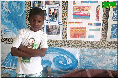 Lui tenant la main, Tijane Diagana, 8 ans, dirige sa mère, Oumou Ba, vers une installation artistique. Cet élève en classe de CE1 montre à sa maman les dessins qu’il a réalisés, sous l’encadrement de l’artiste peintre Sidi Yahya. "J’éprouve de la fierté, lâche sa mère. L’art, c’est très bien pour les enfants. Il développe leur curiosité et leur esprit de créativité".