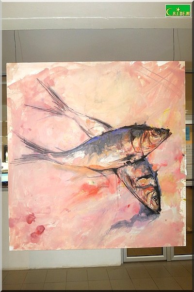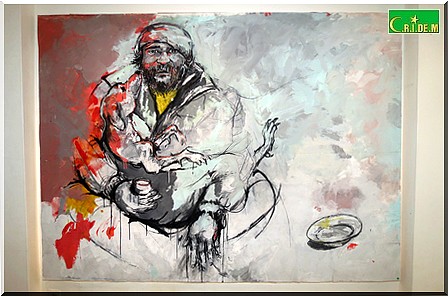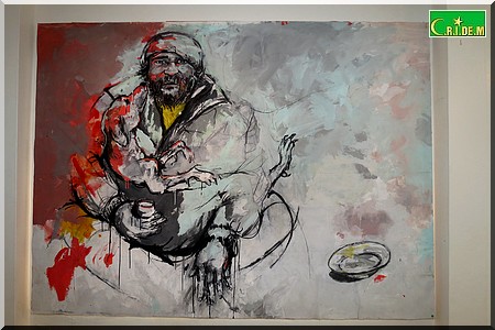CultuRim - Avec ce chien dans les bras d’un itinérant, ses pigeons, ses lapins ou encore ses poissons, Oumar Ball met en avant cette fois, dans sa dernière exposition, à l’Institut Français de Mauritanie (IFM), son amour des animaux.