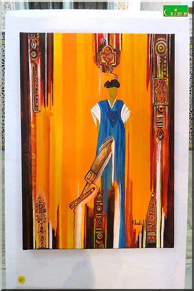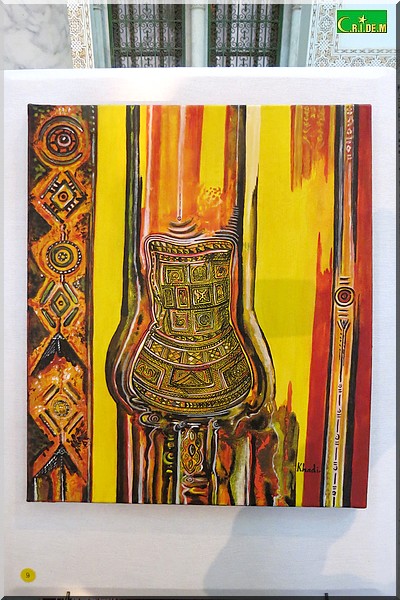 A travers une vingtaine d’œuvres, Khadijétou Mint Ismaïl soumet le visiteur à un véritable retour aux sources. Et, au-delà , elle exprime son refus de voir disparaître tout le cadre naturel de la vie nomade. D’où l’art au service du patrimoine culturel.