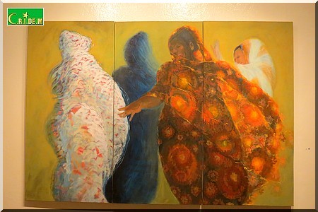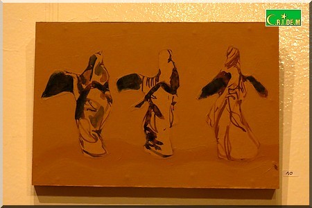 L’artiste a présenté ce mardi 10 Novembre, à l’Institut Français de Mauritanie, son exposition intitulée "Douceur et ardeur" qui entraine le visiteur dans l’intimité des cérémonies de fête où les femmes rivalisent dans la danse. Elle rappelle au passage l’aboutissement de son choix artistique.