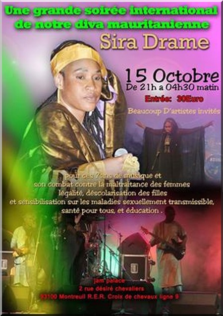 Cridem Culture - Ambiance mauritanienne ce samedi 15 Octobre à Paris pour l’anniversaire de la chanteuse mauritanienne Sira Dramé, originaire de Sélibabi, qui vit actuellement dans la capitale française.