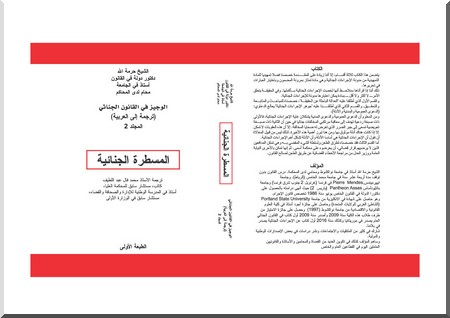 le droit criminel se voit réserver son manuel. Le premier est relatif au droit pénal général et a été publié en 2009 et traduit en arabe en 2013.