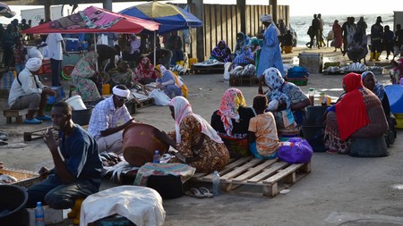 Le port de Nouakchott fourmille d’activités au crépuscule. Commerçants et clients négocient bruyamment le prix du kilogramme de la dorade, tandis que des pêcheurs hissent leur longue pirogue en bois sur la rive.