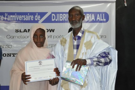 13 élèves issus des écoles Noura, Cesteca, collège de jeunes filles, Ansar, El Mawaheb, collège Ksar et Mocktar Kelly ont fait des prestations qui ont enchanté le public en présence du héro du jour Djibril Zakaria Sall entouré de sa famille et de ses invités, des personnalités de la littérature mauritanienne d'expression française.