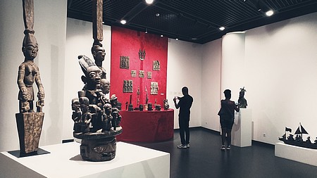 Sur la route, nous faisons un arrêt devant le Monument de la Renaissance, puis une heure plus tard, nous voilà au musée des civilisations noires. Ce lieu est consacré à l’histoire des peuples noirs depuis l’origine jusqu’à nos jours. Le bâtiment est gigantesque. Pour pouvoir le visiter tranquilement, certains en général les américains et les européens prennent 3 à 4 jours, nous explique notre guide, Mamadou Lamine Seck. On y retrouve de tout : le sabre de El Hadj Oumar Tall, par exemple. Dès qu’on mette les pieds au musée, on est frappé par une gigantesque installation de plus de 10 mètres de haut posée au milieu du hall. Il s’agit de « l’arbre de l’humanité » de l’artiste haïtien Edouard Duval Carrie fait en acier déboulonné découpé au laser.