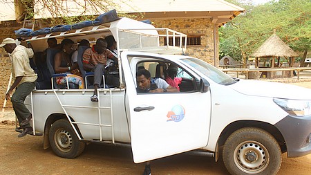 "La route est bonne. On peut arriver à temps. Arrivés sur place, le temps de prendre possession de nos chambres, et puis, on n’aura pas beaucoup de temps, on va descendre du côté du fleuve pour faire une excursion en pirogue, voire un peu la végétation de mangroves et surtout le soir, voir le reposoir des oiseaux. C’est un spectacle très intéressant qu’on ne va pas manquer de voir", nous prévient notre guide, Mamadou Lamine Seck.