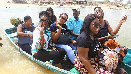 Le lendemain, après le petit déjeuner, je découvre dans le bus les autres collègues venus du Mali, de la Côte d’Ivoire, du Nigeria et du Ghana. Nous faisons aussi la connaissance de nos interlocuteurs. Mamadou Lamine Seck, guide touristique, à STD. Pape Souleymane Diallo, Cadre supérieur en tourisme/Chef de Marchés à l'ASPT, et Mme Yolande Delgado, Cadre en Tourisme, chargée de promotion à l’Agence Sénégalaise de Promotion Touristique (ASPT) qui vont nous accompagner durant tout notre séjour au Sénégal.