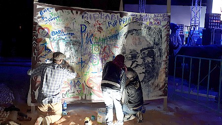 Un hommage pour saluer l’apport du doyen feu Babi Sarr, artiste musicien à la musique mauritanienne et au jazz en particulier en souvenir de qui une fresque a été réalisée sur place par la Maison des Artistes sous le pinceau de Mokhis.