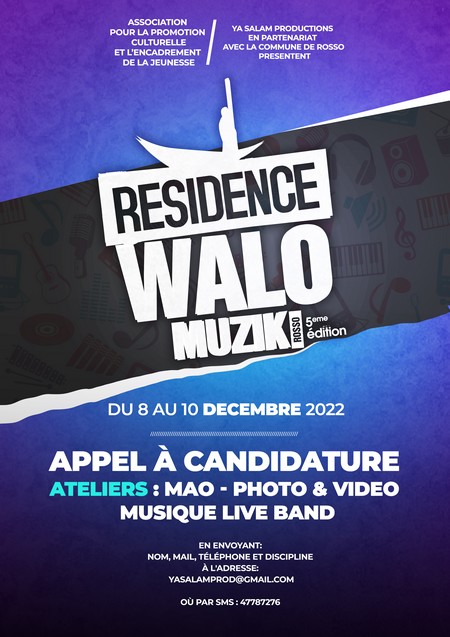 Festival Walo Muzik - Top c'est parti, pour la 5ieme édition du Festival Walo Muzik de Rosso du 08 au 10 décembre 2022. Ne manquez pas l'événement incontournable de la scène culturelle du chef lieu du Trarza avec une pléiades d'artistes, intervenants et des spectacles.