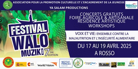 Rendez-vous à Rosso, du 17 au 19 avril 2025, pour célébrer la musique, la culture et l’esprit du Walo ! L’Association pour la Promotion Culturelle et l’Encadrement de la Jeunesse (APCEJ) est fière d’annoncer la tenue de la 7e édition du Festival Walo Muzik, un rendez-vous incontournable de la scène culturelle mauritanienne, qui se déroulera du 17 au 19 avril 2025 à Rosso.