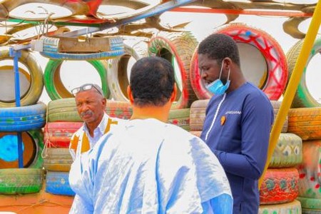 Ce programme a permis le recyclage de 8 703 bouteilles plastiques et 3 106 pneus usagés, ayant servi à la fabrication de la première tente en plastique recyclé de Mauritanie et à la création d’un espace de coworking écologique sur le toit de notre siège.